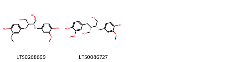 Cấu trúc hóa học của các hoạt chất thuộc nhóm Cyclobutane lignans là 8-[2,3-diacetyl-4-(7-methoxy-2-oxochromen-8-yl)cyclobutyl]-7-methoxychromen-2-one (LTS0261353), 8-[(1s,2r,3s,4r)-2,3-diacetyl-4-(7-methoxy-2-oxochromen-8-yl)cyclobutyl]-7-methoxychromen-2-one (LTS0061374).