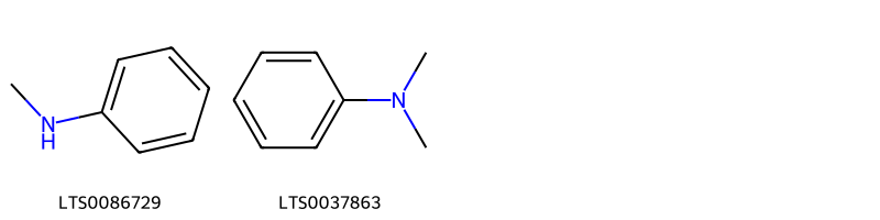 Cấu trúc hóa học của các hoạt chất thuộc nhóm Organonitrogen compounds là methylaniline (LTS0086729), dimethylaniline (LTS0037863).