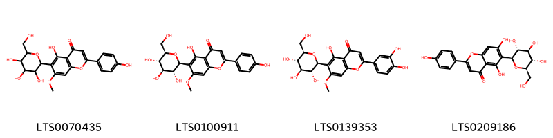 Theo cơ sở dữ liệu lotus, loài Lophatherum gracile đã phân lập và xác định được 4 hoạt chất thuộc về các nhóm Flavonoids trong bảng dưới đây.